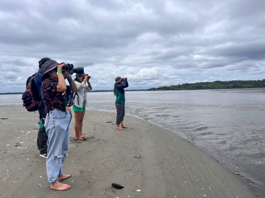 Participantes de la ELA realizan identificación de aves playeras en la Isla de los Pájaros – San Lorenzo, parte de la KBA ECU70 / ©Gina Narváez – Fundación ALTROPICO